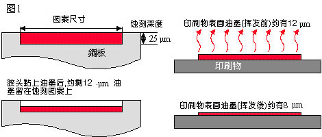 移印油墨與絲印油墨相似,但絲印油墨不會快速揮發(fā),否則油墨就會在網(wǎng)框里干透。反之,移印油墨則需要有高度揮發(fā)的功能,令油墨能輕易黏上及離開膠頭。另外,移印油墨比起絲印的會較薄。(圖1)