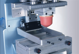 油盤的安裝和拆卸較為簡單,直接將油盤底面突出的燕尾推進工作臺上的燕尾槽內,調整到工作臺中間的位置,用六角板手將其固定擰緊,然后再安裝好刮刀和膠頭;再將蝕刻好的鋼板放入油盤內,用六角板手將油盤前面的累絲擰緊,將鋼板固定;倒入適量油墨,并注入稀釋溶劑攪伴,一般油墨的深度不可多于鋼板高度的2mm。啟動移印機,先用刮刀來回刮勻油墨。當移印工件一切準完好后,即可開始移印。注意,當長時間不使和移印機時,應該油盤取下,將里面的油墨清洗干凈,以備下次使用。