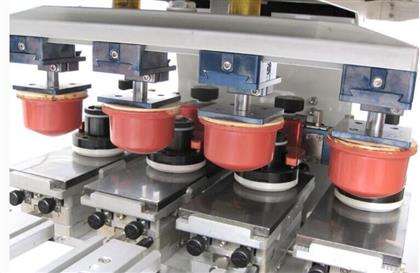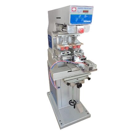 雙色雙頭環保油盅移印機適合金屬、玻璃、陶瓷、塑膠、木材、皮革等材質的印刷面積比較小的平面、弧面以及不規則面產品的精密印刷。如手機按鍵、高爾夫球及球頭、玩具、筆、鼠標、電子產品、工藝品、鞋跟等等。