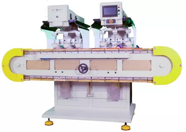 多色移印機又會根據(jù)各色之間的傳動方式不一樣分為穿梭式和輸送帶式多色移印機。