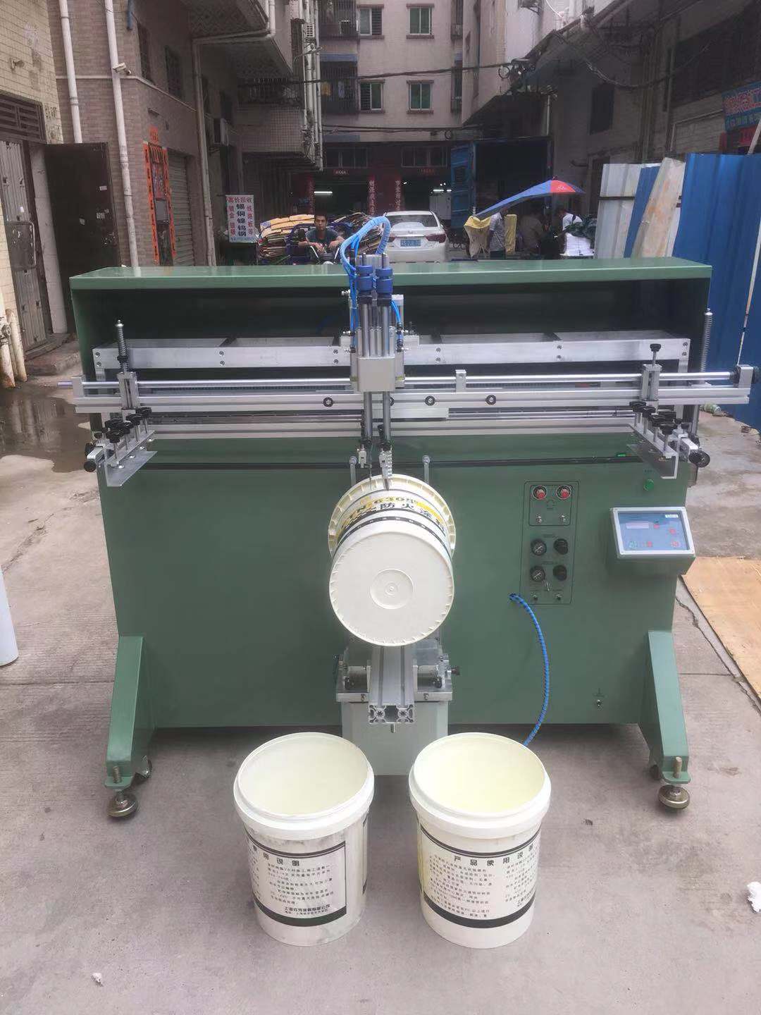 涂料桶油漆桶套色電動絲網印刷機專業印刷塑膠、玻璃、陶瓷、木材、金屬等材質制成之的圓筒、橢圓、扁型產品的曲面絲網印刷。印刷產品例如:唇膏外殼、化妝品瓶子、洗滌劑瓶子、飲料瓶、杯子,濾清器、罐子、玩具等